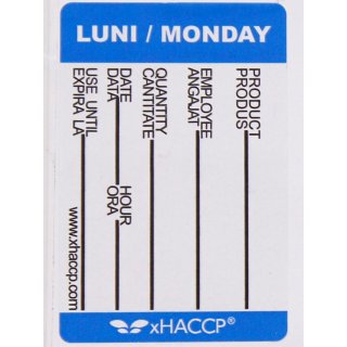 Etichete zilele saptamanii xHACCP - Luni